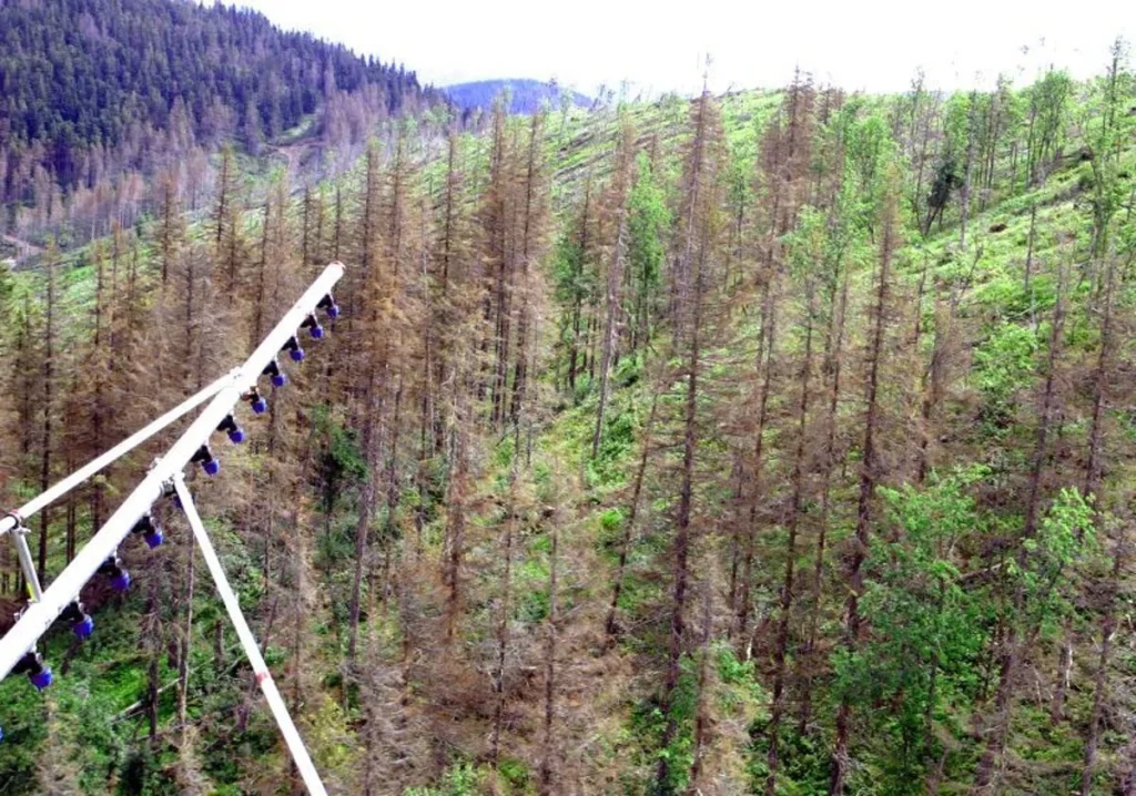 Situáciu ilustroval na sociálnej sieti šéf envirorezortu Taraba. Na základe leteckých snímok Muránskej planiny skonštatoval, že jej stromy sú buď mŕtve, alebo umierajú.