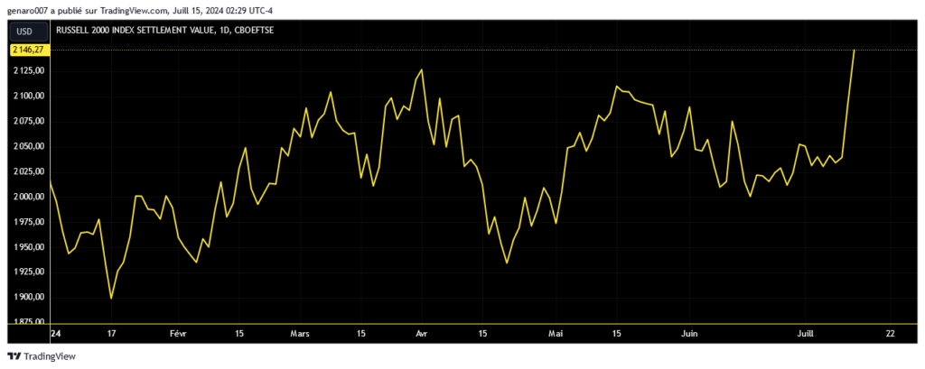 Nápoveď nám dal silný trojpercentný rast indexu Russell 2000, čo je americký akciový index, ktorý predstavuje dvetisíc najmenších spoločností kótovaných na americkom akciovom trhu. Prednosťou tohto indexu je, že je často považovaný za barometer amerických spoločností s malou trhovou kapitalizáciou a ponúka jedinečný pohľad na dynamický a diverzifikovaný segment amerických spoločností s najmenšou trhovou kapitalizáciou.
