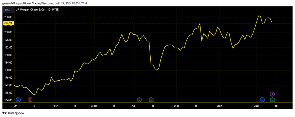 Vývoj akcií JP Morgan od začiatku tohto roka.