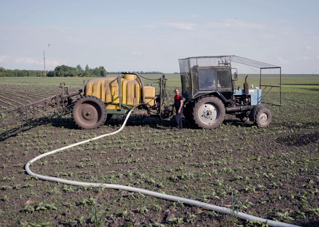 Mimo mesta sa poľnohospodári prispôsobili vojnovému stavu. Keď sa 29-ročný Andrej nedávno popoludní pripravoval na polievanie poľa so slnečnicami, jeho traktor bol oblepený sieťou, ktorá mala odradiť drony. Na vrchu boli pripevnené zariadenia na rušenie radarov.