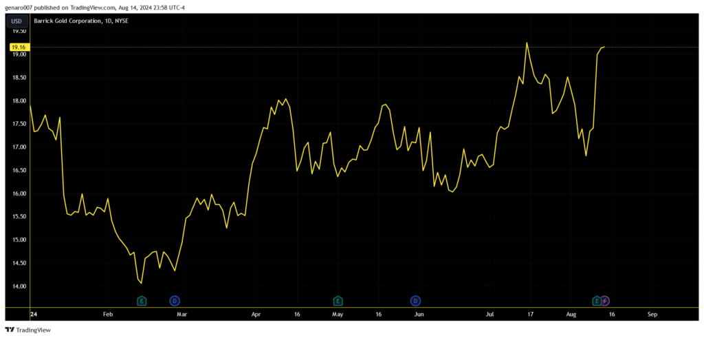 Príčina týchto dobrých výsledkov je jasná: cena žltého kovu za rok vzrástla z 1 972 dolárov za uncu na 2 344 dolárov. Teraz sa už cena pohybuje okolo 2 500 dolárov, takže tretí štvrťrok bude taktiež dobrý. Jedinou chybou na kráse je zníženie produkcie. V druhom štvrťroku Barrick Gold vyťažil 948-tisíc uncí zlata, zatiaľ čo v prvom štvrťroku to bolo vyše 1 milión uncí.