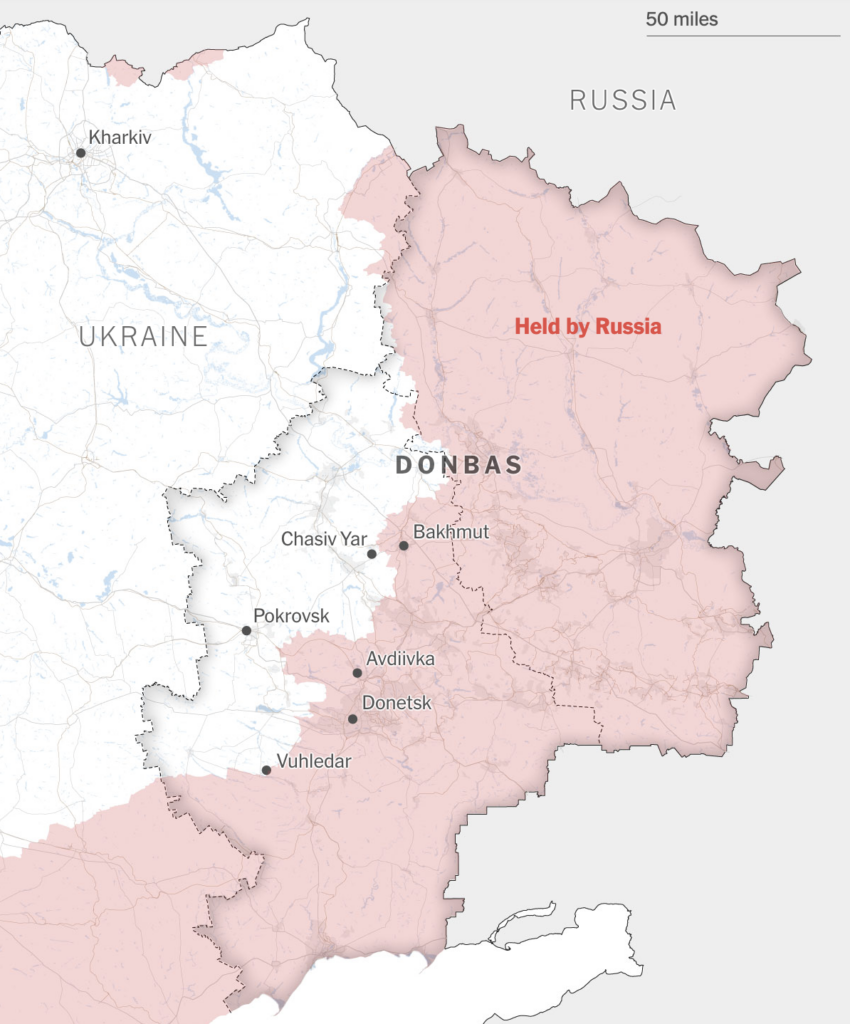 Po mesiacoch neustáleho tlaku a drvivých, krvavých postupov ruské sily tlačia na viaceré opevnené pozície pozdĺž viac ako 160 kilometrov dlhého rozčleneného frontu vo východnej časti Doneckej oblasti. Strata ktorejkoľvek z týchto dôležitých obranných pozícií by pre Ukrajinu mohla výrazne zmeniť priebeh boja o kontrolu nad regiónom, po ktorom dlhodobo túži ruský prezident Vladimir Putin.