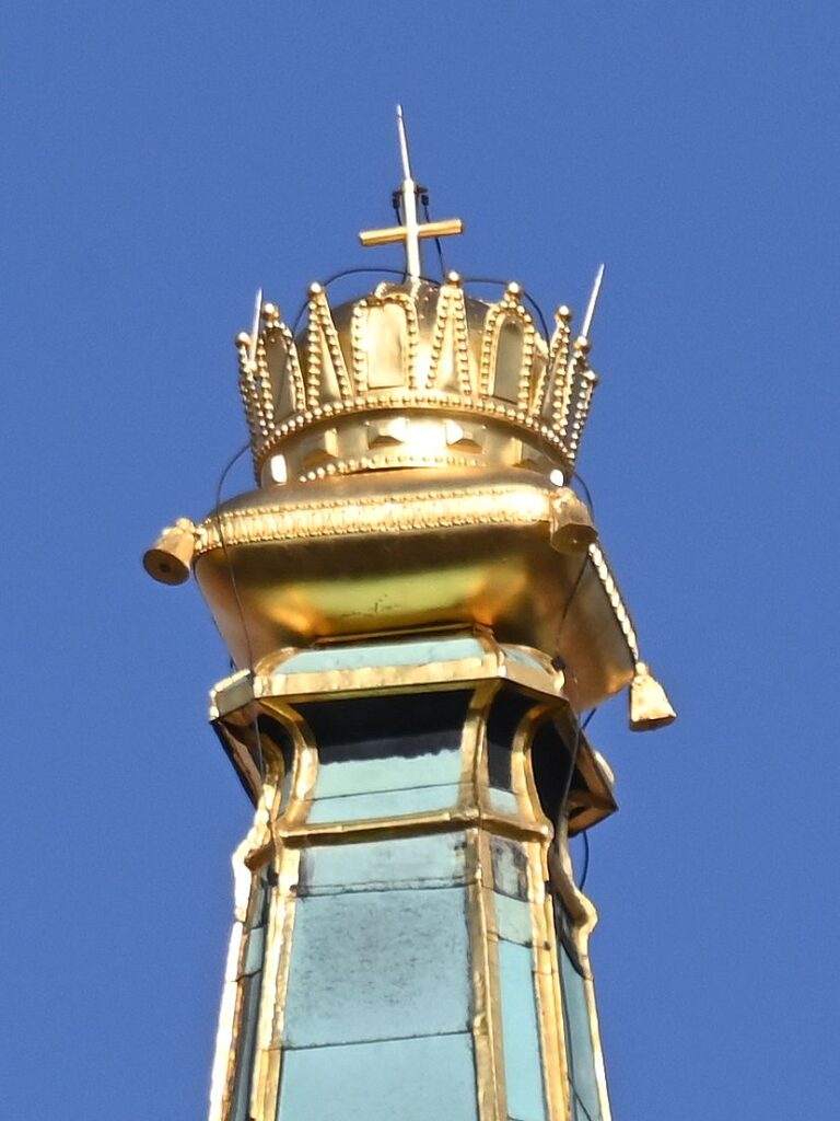 Model kráľovskej koruny vyrobili z medi, vankúš mal plochu štyri štvorcové metre a celková váha bola 300 kg. Na veži vydržala až do roku 1833. Osudným sa jej stal, zhodou okolností, opäť zásah blesku, ktorý zapálil strechu veže a medená helmica s korunou spadli na zem a zničili sa.