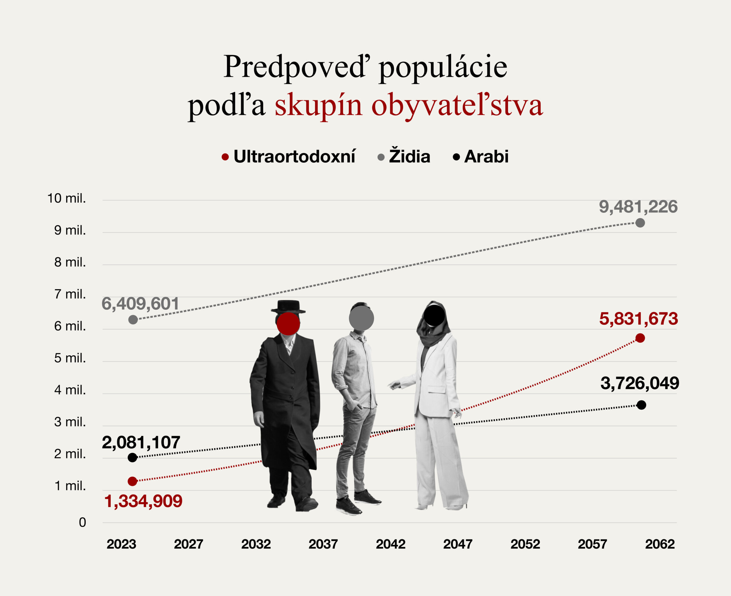 Odhady preto uvádzajú, že do roku 2030 vzrastie pomer ultraortodoxných v izraelskej populácii na 16 percent a v roku 2033 bude mať táto miestna subkultúra dva milióny ľudí.