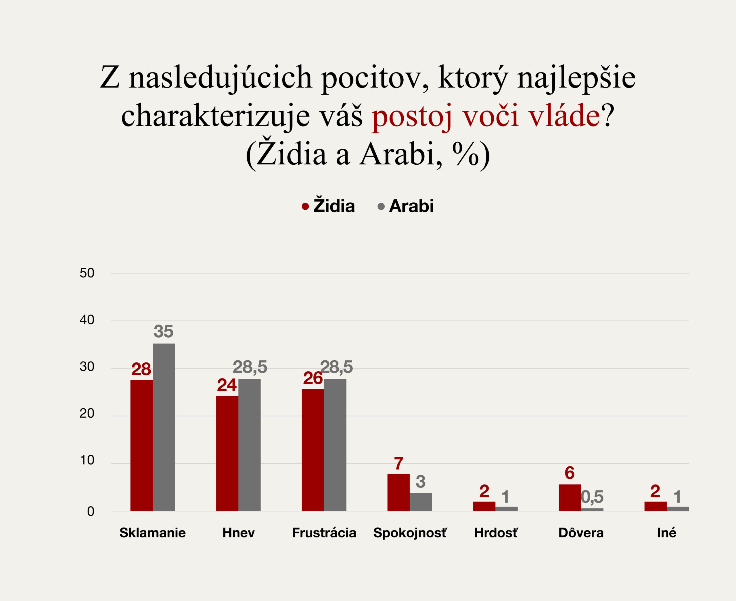 Prieskumy verejnej mienky taktiež ukazujú, ako hlboko siaha rozhorčenie domácich obyvateľov voči súčasnej vláde Izraela. Drvivá väčšina Židov, ale aj Arabov tvrdí, že sú sklamaní, nahnevaní alebo frustrovaní. Ide konkrétne o 92 percent opýtaných Arabov a 78 percent Židov.
