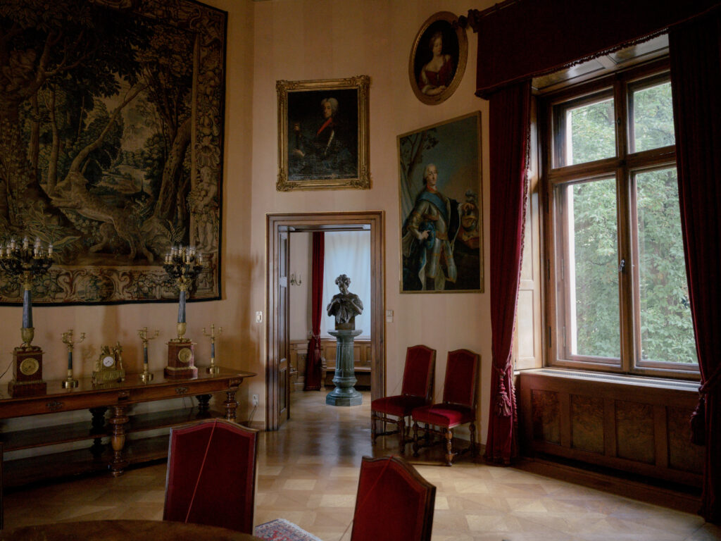 Po prehliadke paláca s freskami, obrovskými lustrami a knihami z čias Svätej ríše rímskej prehovorila v súkromných priestoroch plných moderného umenia vrátane obrazov Keitha Haringa a Kehinde Wileyho.
