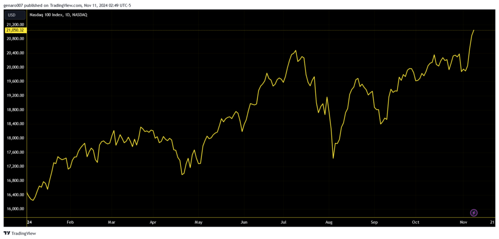 Na akciovom trhu naozaj nie sú k dispozícii lacné tituly. Pokiaľ budeme realistickí a predpokladáme, že index Nasdaq do konca roka pridá ďalších 10 percent, teda zhruba 2-tisíc bodov, dosiahne ročné zhodnotenie približne 60 percent. Vzhľadom na to, že americká ekonomika rástla len o 3 percentá a inde vo svete sa rast nevyvíjal lepšie, sú trhy skutočne prehriate – a Trumpovo zvolenie tento stav môže ešte posilniť.