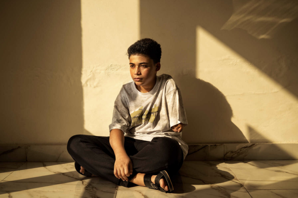 Pätnásťročný Ibrahim al-Dahouk bol tiež vyhnaný z rodinného domu v meste Gaza, v jeho prípade výbuchom vo vedľajšom dome, ktorý mu odtrhol ruku. Jeho otec sa zúfalo snažil končatinu zachrániť, posadil ho na invalidný vozík a odtlačil ho do nemocnice v meste na juhu.