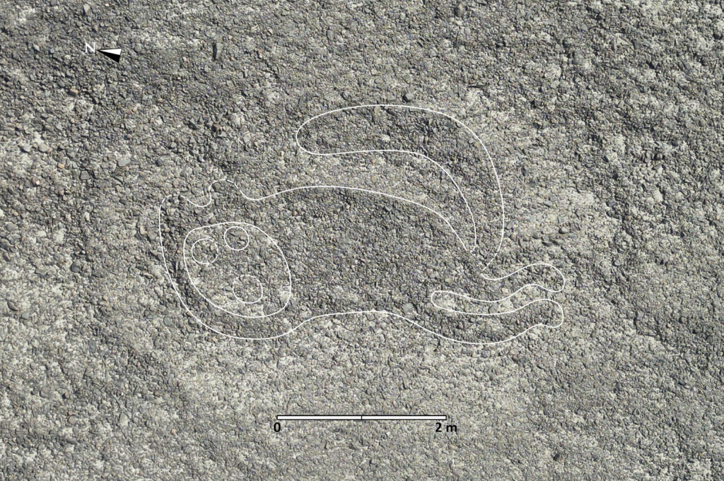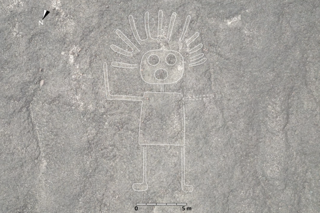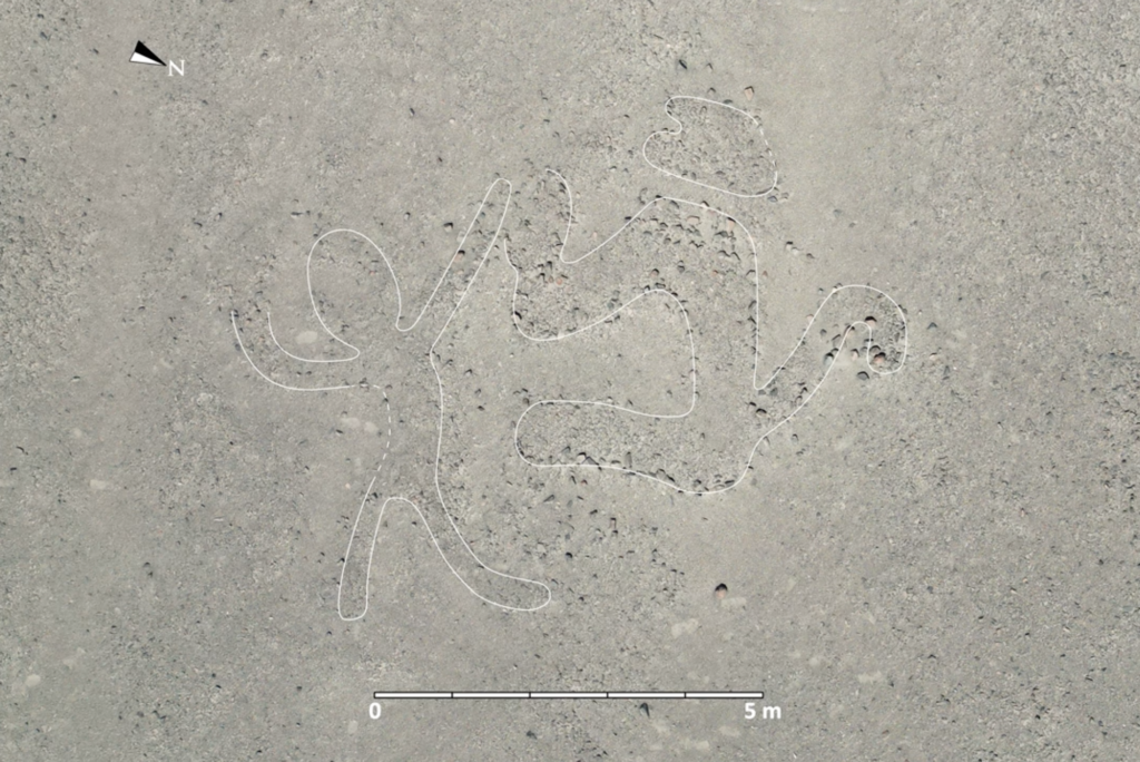 Pred dvoma rokmi začali výskumníci s prieskumom sľubnejších lokalít pešo a pomocou dronov a nakoniec overili 303 geoglyfov. Medzi vyobrazeniami boli rastliny, ľudia, hady, opice, mačky, papagáje, lamy a strašidelná scéna, na ktorej kosatka s nožom odrezáva ľudskú hlavu. Z nových obrazcov bolo 244 určených pomocou technológie, zatiaľ čo ďalších 59 bolo identifikovaných počas terénnych prác bez pomoci umelej inteligencie.