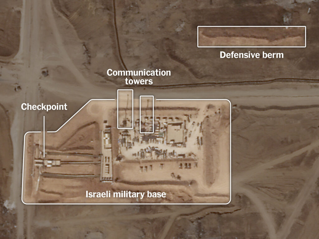 Analýza satelitných snímok z posledných troch mesiacov, ktorú vykonal denník Times, ukazuje, že izraelská armáda má v celej oblasti najmenej 19 veľkých základní a desiatky malých. Hoci niektoré z nich boli postavené už skôr počas vojny, snímky tiež ukazujú, že tempo výstavby sa zrejme zrýchľuje: dvanásť základní bolo postavených alebo rozšírených od začiatku septembra.
