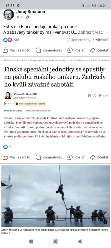Záber bol súčasťou screenshotov obrazovky, ktoré ukazovali článok českého spravodajského webu Novinky o tom, ako fínske špeciálne jednotky nedávno zadržali plavidlo plávajúce z Ruska a podozrivé zo sabotáže podmorského elektrického kábla Estlink 2.