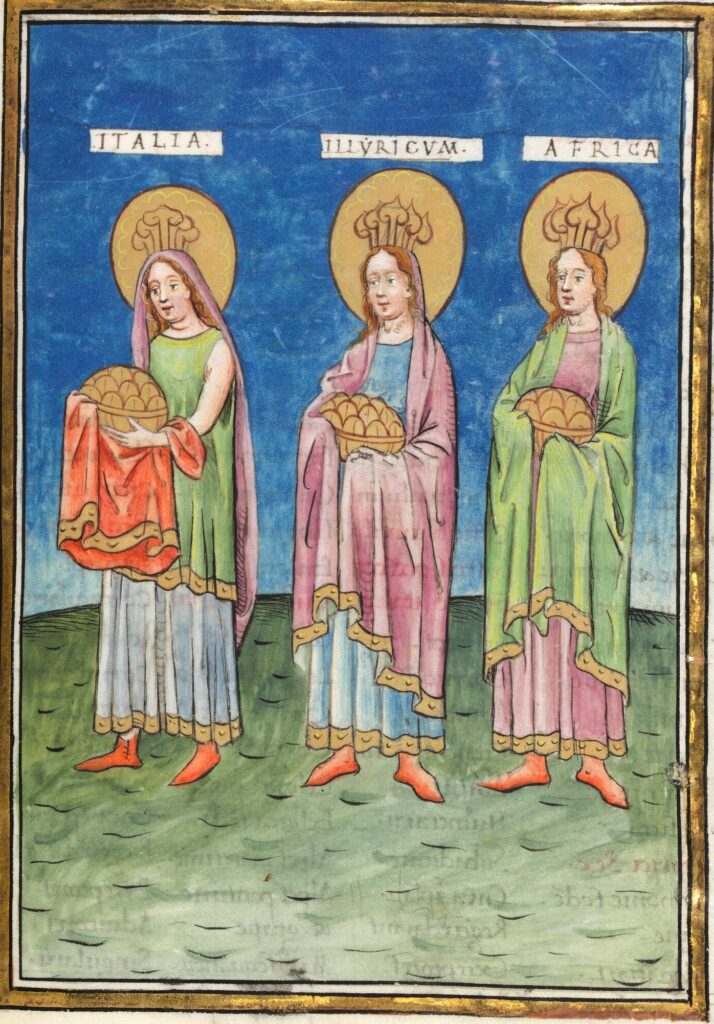 Koncept vyšších politických jednotiek kreovaných na základe prevládajúceho jazyka sa nakoniec presadil aj na sklonku ďalšieho storočia v rámci politiky Otovcov známej ako Renovatio Imperii Romanorum, teda obnovenie Rímskeho impéria. Impérium malo byť Tetrarchiou tvorenou štyrmi provinciami Galiou, Germániou, Itáliou a Sclaviniou. Veľmi dobre to ilustruje nasledujúca iluminácia z Otovho evanjeliára zhotoveného okolo roku 1000.