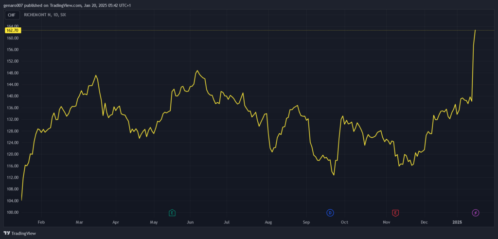 Svoje hospodárenie predstavila aj švajčiarska firma Richemont, pod ktorú spadajú značky ako Cartier, Van Cleef & Arpels, Giampiero Bodino a výrobcovia hodiniek Piaget či luxusné perá Montblanc, zaznamenala tržby vo výške 6,15 miliárd švajčiarskych frankov pri očakávaní 5,44 miliárd švajčiarskych frankov. Vedenie firmy pozoruje oživenie dopytu po luxusnom tovare vo svete.