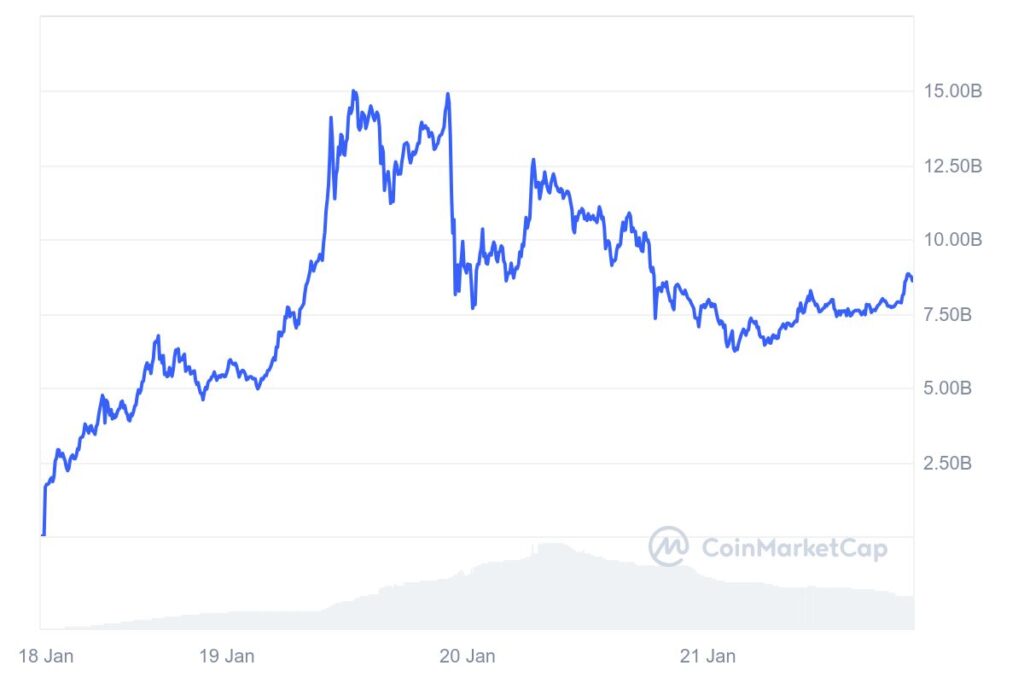 Trump následne informáciu o vytvorení zdieľal na sieti X. Príspevok mal cez 100 miliónov zobrazení a získal cez 349-tisíc srdiečok. Záujem sa rýchlo prejavil aj na kurze tohto memecoinu. Burzová kapitalizácia narástla z dvoch miliárd na viac ako 15 miliárd prakticky počas jedného dňa. O chvíľu neskôr nasledoval aj memecoin prvej americkej dámy. Vývoj bol obdobný. Trumpovi fanúšikovia sa doslova vrhli na tieto memecoiny.
