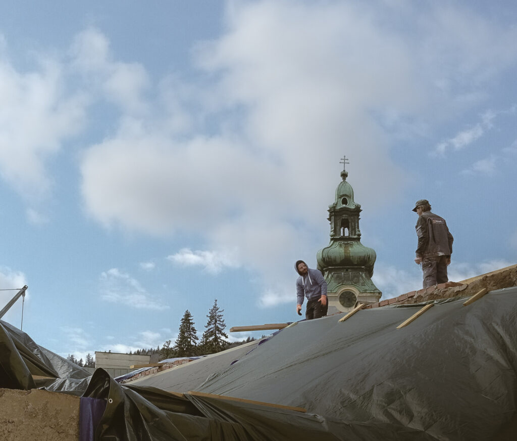 V interiéri už osadili drevené trámové stropy, na ktoré budú ešte maľovať. „Následne sa budú robiť reštaurátorské práce na freskách. Robíme najrýchlejšie, ako vieme, a v roku 2026 by sme radi otvorili,“ doplnil Brossmann.