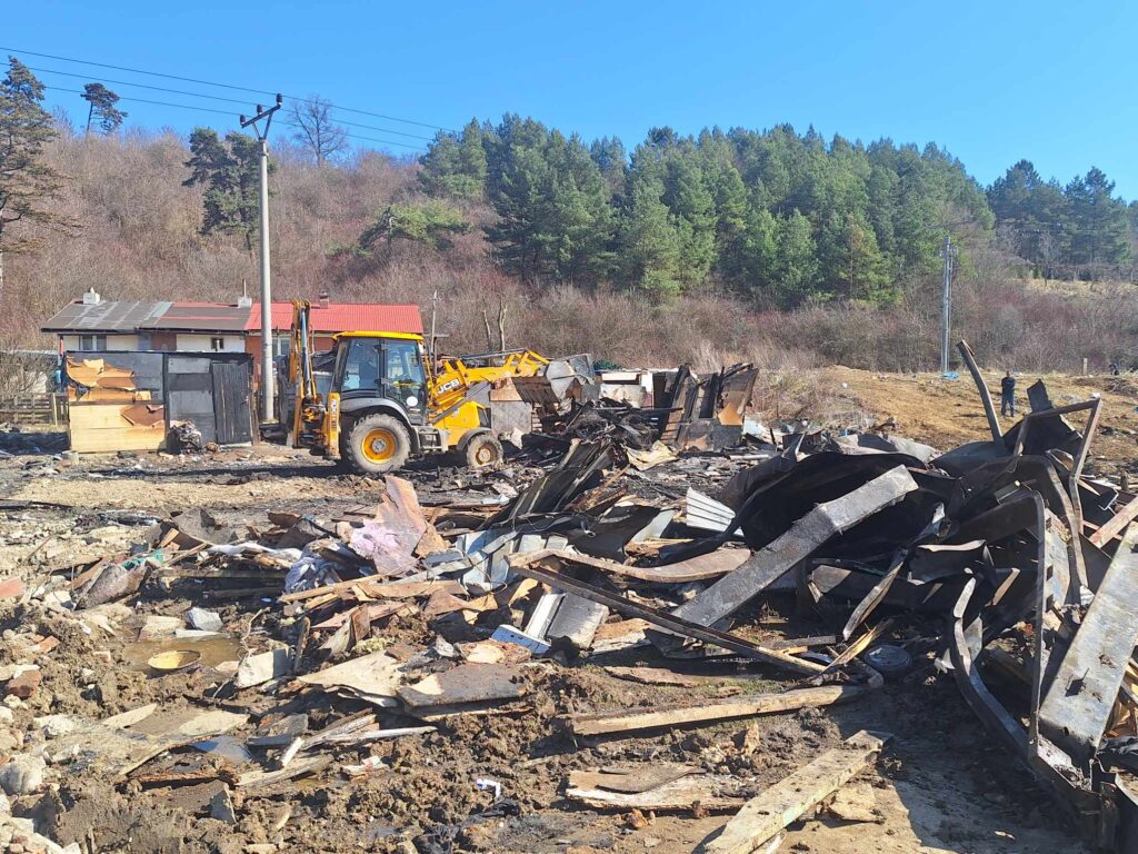 V piatok ráno už na mieste požiaru pracovali ťažké stroje. Zhorené skelety bývalých obydlí už stihli odviezť.