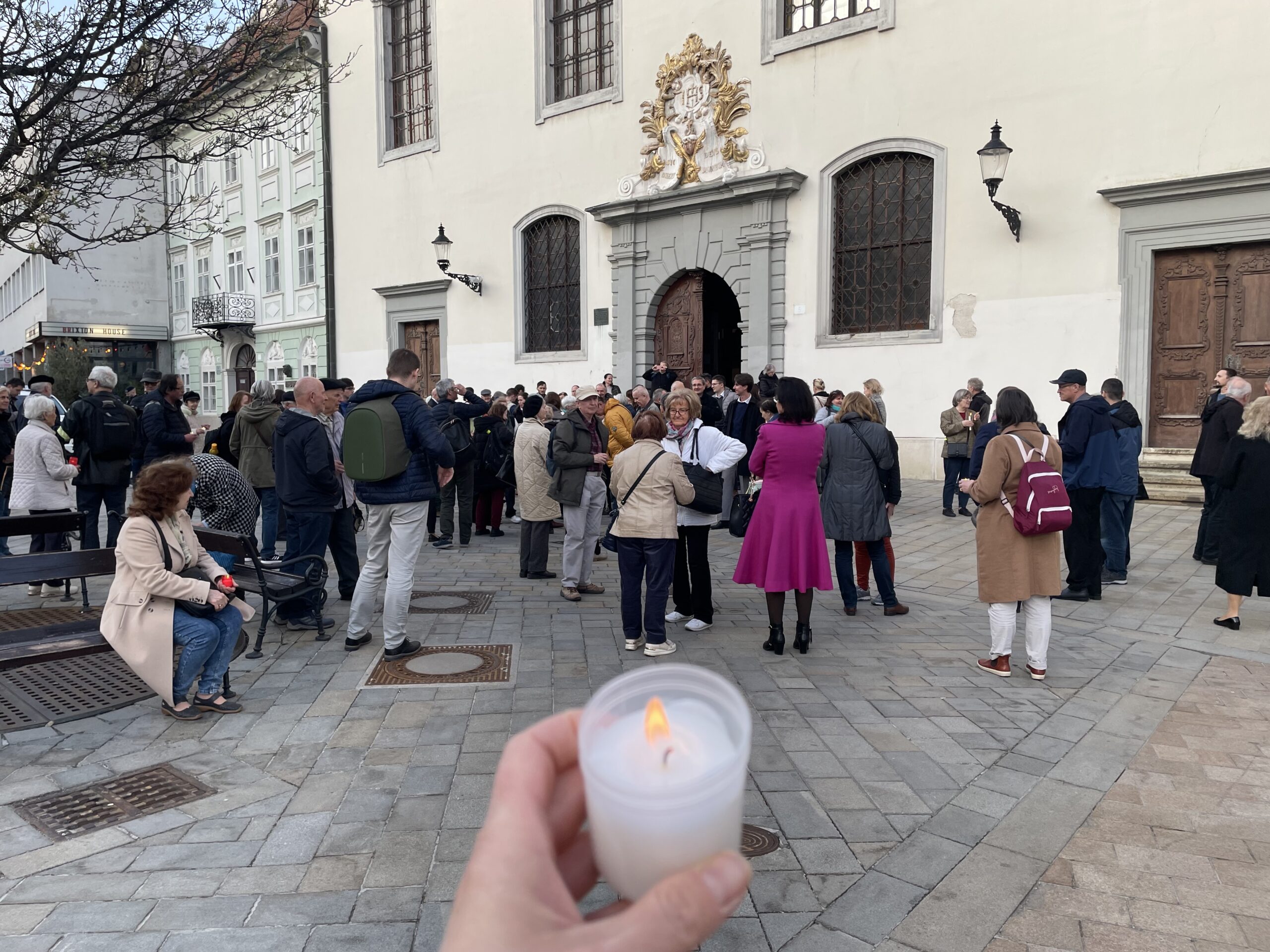 Po svätej omši, ktorú celebroval páter Jozef Konc OFMCap., účastník Sviečkovej manifestácie, sa v tichosti pred jezuitským Kostolom Najsvätejšieho Spasiteľa na Františkánskom námestí pomaly rozsvecovali sviece. Ľudia väčšinou skoršie narodení spomínali na významný deň a obdobie, ktoré nepochybne viedlo k pádu komunizmu.