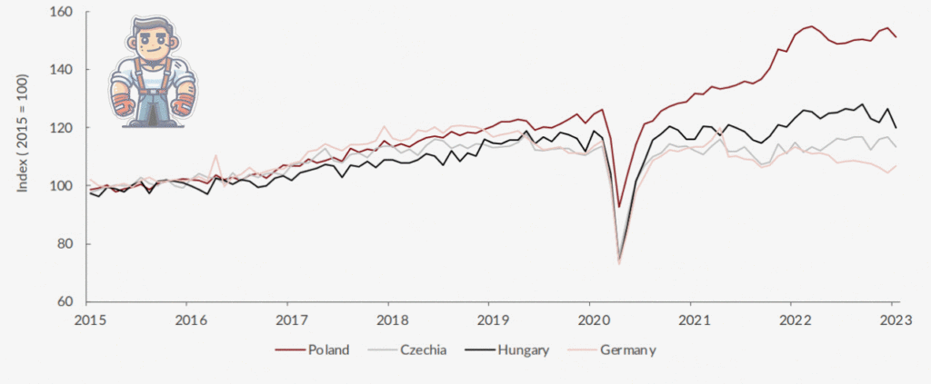 V poslednom desaťročí však do Poľska prúdia zahraničné investície. Mercedes, Bosch, MAN a ďalší nemeckí giganti tam presúvajú svoju výrobu. Poľská ekonomika v roku 2024 vzrástla o 2,9 percenta, zatiaľ čo nemecké hospodárstvo mierne klesalo. Poľská priemyselná výroba rastie, zatiaľ čo nemecká pozná len jeden smer – pokles.