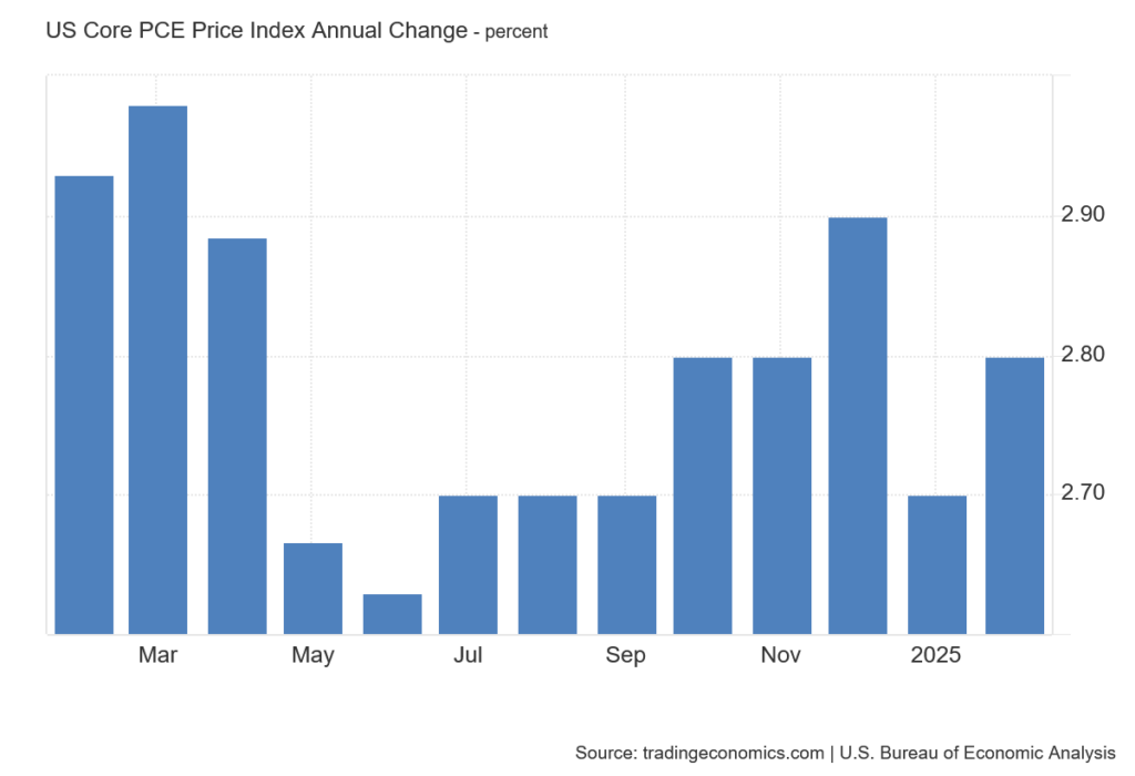 V piatok sme sa dozvedeli údaj o americkej inflácii PCE za mesiac február. Tento ukazovateľ, ktorý americký Fed intenzívne sleduje, medzimesačne vzrástol o 0,4 percenta, hoci analytici očakávali rast iba o 0,3 percenta. V medziročnom vyjadrení potom inflácia PCE, ktorá nezahŕňa ceny potravín a energií, stúpla na 2,8 percenta.