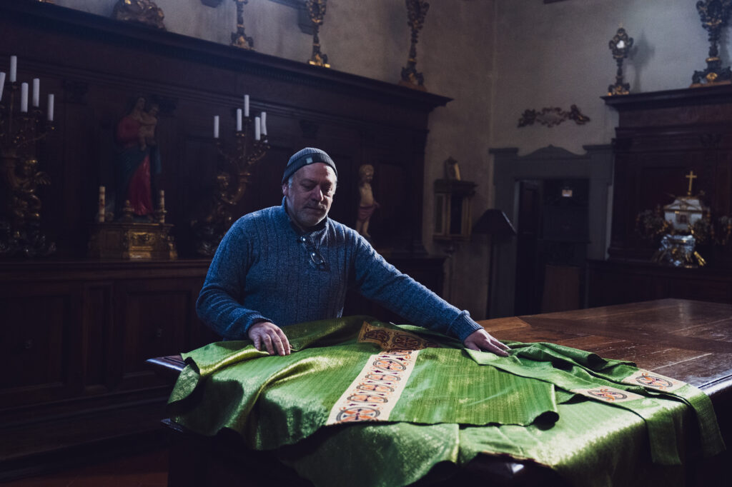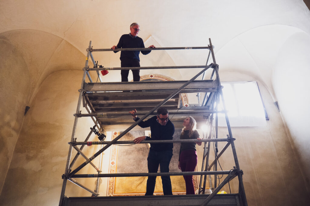 Alderighi sa oženil s Rasoiniovou, žijú „kúsok“ od kláštora a spriatelili sa s jeho správcom, ktorý im ako prvý ukázal fresku Ukrižovania. Keď Woloshin prišiel do Talianska, aby u nich viedol kurz o medicíne v médiách, priviedli ho, aby si dielo pozrel.