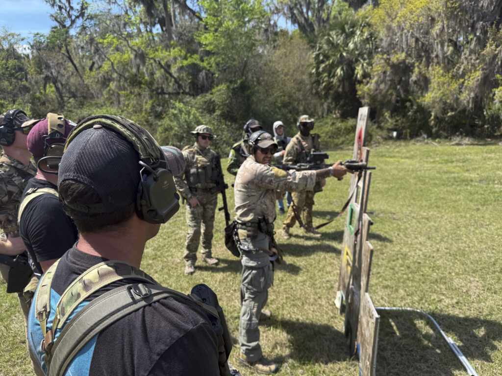 Desať mužov, niektorí v maskáčoch, iní vo vestách plných nábojov do pušiek AR-15, sa minulý mesiac zhromaždilo v rannom tieni dubov na strednej Floride. Prišli, aby sa naučili taktiku streľby, ktorá je bežná medzi jednotkami špeciálnych operácií a elitnými policajnými jednotkami.