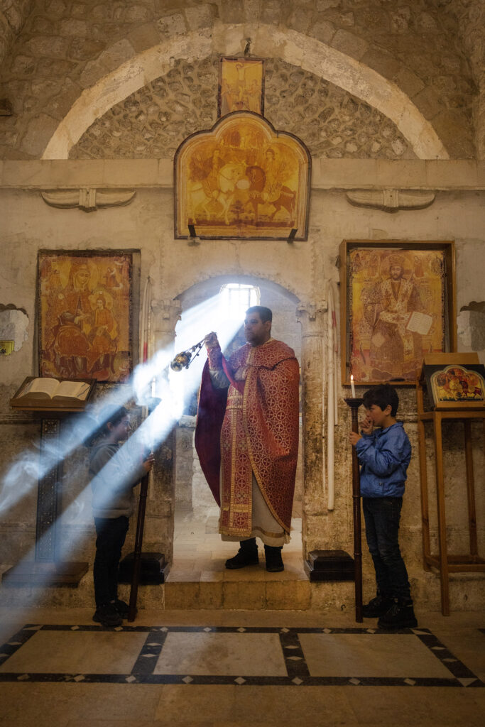 V stáročnom kláštore na vrchole hory v západnej Sýrii kňaz hojdal kadidelnicu na reťazi, viedol svoje ovečky v melodických spevoch a predniesol nadčasovú kázeň o dôležitosti lásky k blížnemu.