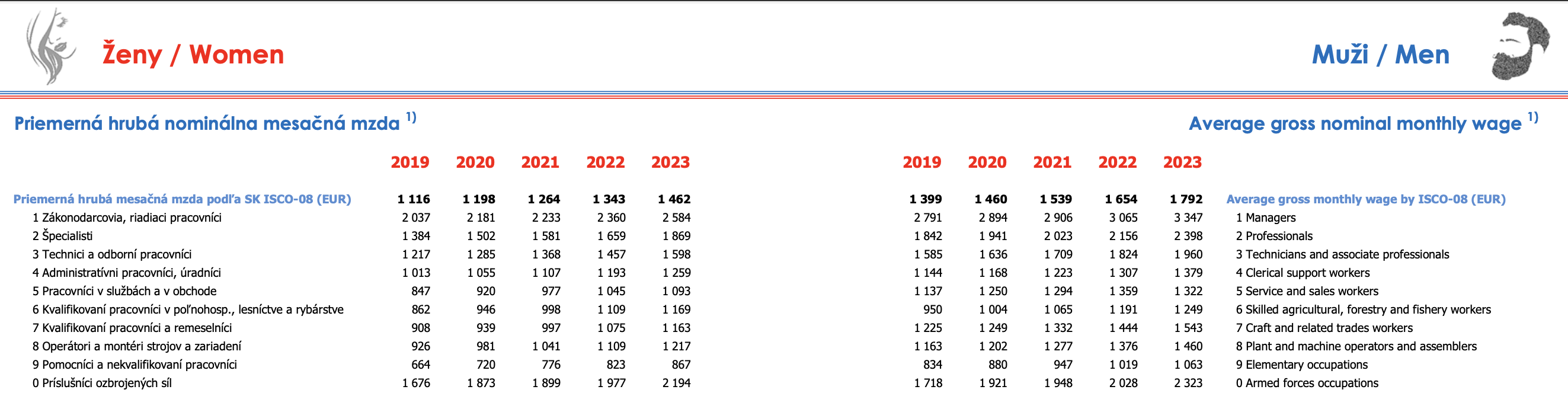 Administratívni pracovníci majú asi o sto eur viac ako ich kolegyne na tých istých pozíciách. Markantný rozdiel je u zdravotných sestier, štatistický úrad uvádza hrubú mzdu 1 467 eur, kým u mužských náprotivkov je plat 1 805 eur za mesiac.