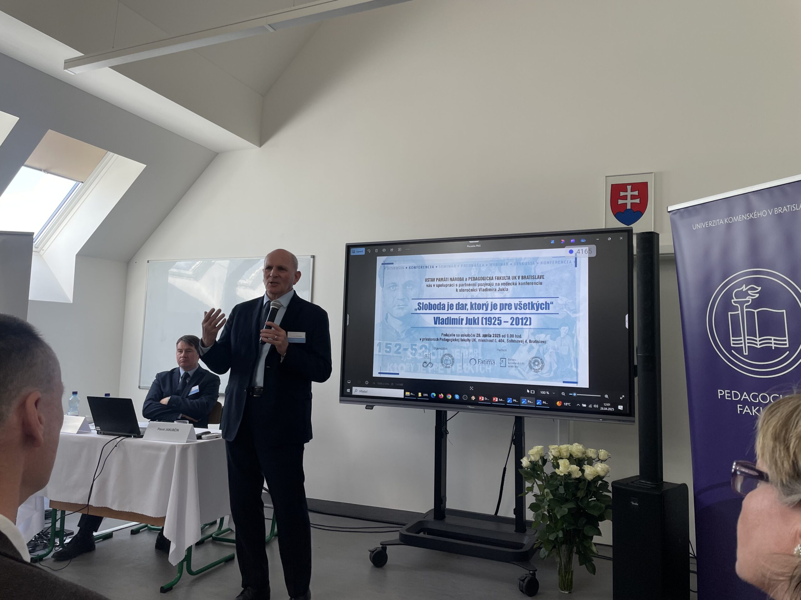 V pondelok sa pri príležitosti sto rokov od narodenia Vladimíra Jukla konala aj vedecká konferencia Sloboda je dar, ktorý je pre všetkých, ktorú organizoval Ústav pamäti národa v spolupráci s Pedagogickou fakultou Univerzity Komenského v Bratislave.