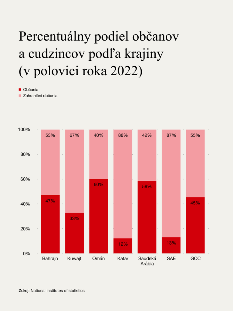 Ďalším spoločným znakom krajín Perzského zálivu je ich veľká závislosť od zahraničnej pracovnej sily, ktorá je nevyhnutná na udržanie ich ekonomík. V Katare tvoria migranti viac ako 88 percent pracovnej sily, zatiaľ čo v Ománe, kde je ich podiel najnižší, je to približne 40 percent. Okrem bežných problémov, akými sú zlé pracovné podmienky a nedostatočná ochrana pracovníkov, ktoré migranti často znášajú v snahe získať lepší zárobok, región čelí aj ďalšej komplikácii: závislosti od dočasnej pracovnej sily bez hlbokej sociálnej integrácie.