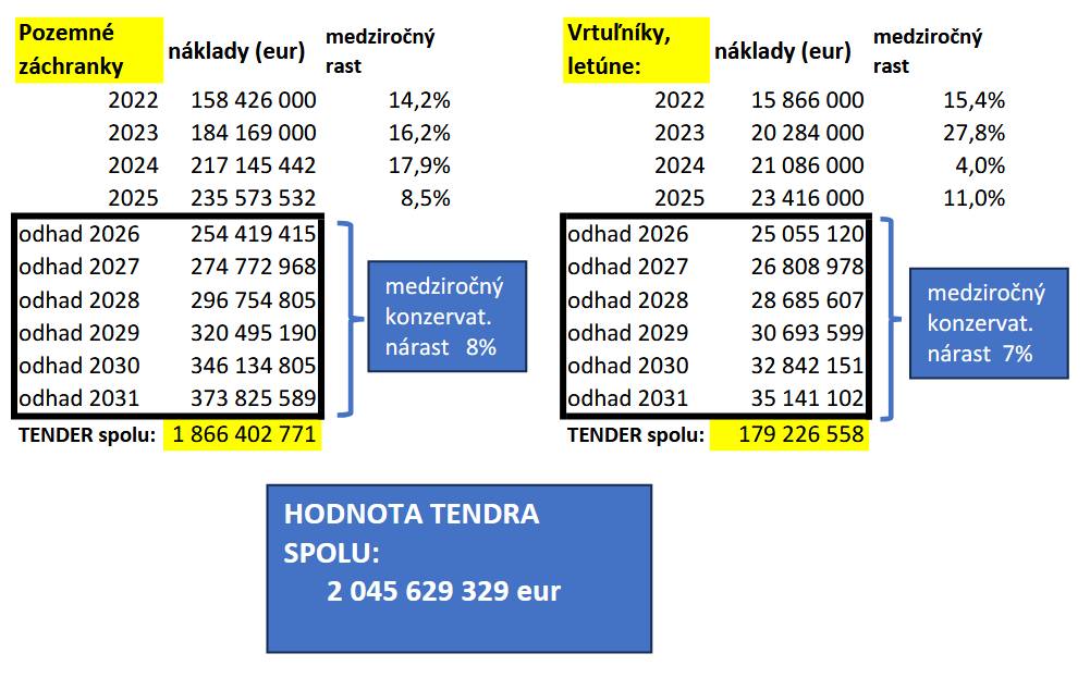 Dodala, že v aktuálnom tendri je o osem percent bodov pozemných záchraniek viac, čo ovplyvňuje sumu. Podľa jej slov pôjde o doposiaľ najväčšiu zákazku v zdravotníctve.