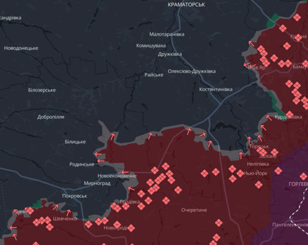 Podobne ako v prípade neďalekej Kosťantynivky aj v Pokrovsku sa Rusi snažia uzavrieť Ukrajincov do klieští – teda roztiahnuť frontovú líniu po oboch stranách hlavného bojiska s cieľom obkľúčiť obrancov.